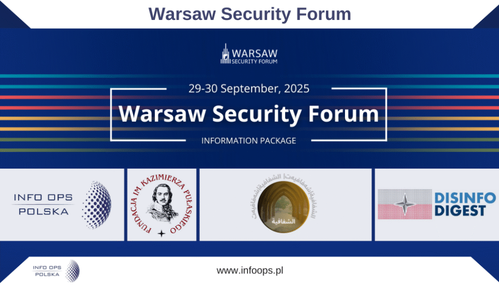 Fundacja INFO OPS Polska bierze udział w prestiżowym Warsaw Security Forum (WSF) 2025. We współpracy z Fundacją Kazimierza Pułaskiego strategiczne działania na rzecz bezpieczeństwa informacyjnego w ramach projektu „Albatros II – MENA”.